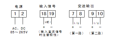 注:1、输入与输出对应关系一般为输入信号标称值0~100%对应变送输出4~20mA,有特殊要求(如功率变送器、直流电流/电压变送器需正、反向变送输出)需对应输出DC4~12~20mA时,务必特殊说明。