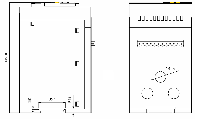 9. 保护器主体采用35mm标准导轨安装方式,方便安装与拆卸;显示模块屏装(开孔尺寸为96.5mm×54.5mm);